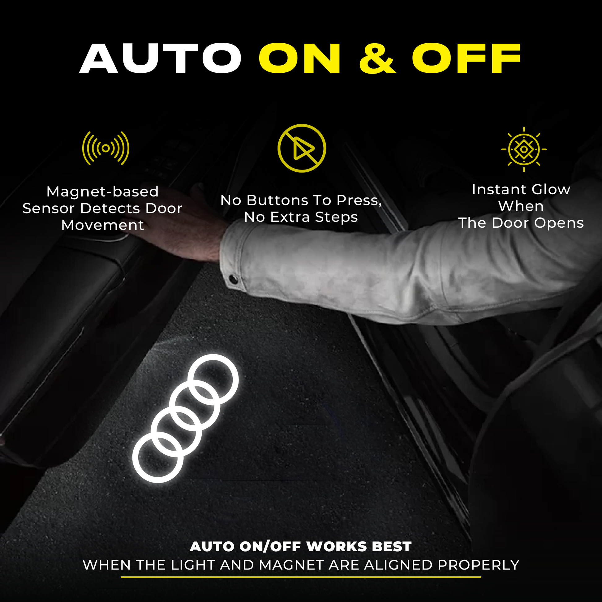 CAR WITH THE WARMEST WELCOME: The hottest car accessory in the market. Door welcome lights project the logo of the car as soon as the door opens. A pleasing and welcoming entryway reflects your identity as a car owner. Let your car greet you!?