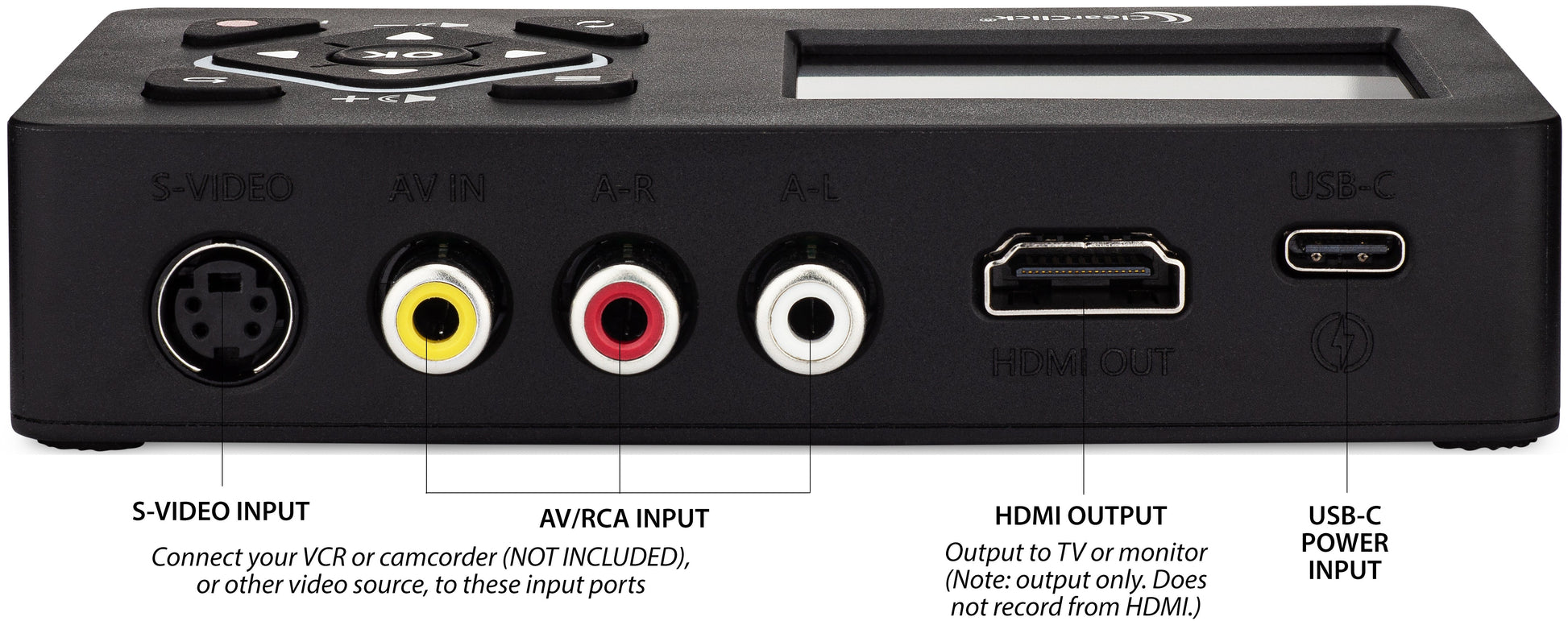 - Press the Record button on the converter. You'll be able to see your video on the 2.4 LCD as it transfers. (No computer is required to capture your videos!)